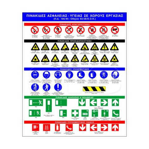 Κατόπιν παραγγελίας Η πινακίδα αποτελείται από φύλλο αλουμινίου πάχους 1mm. Φέρει στο πίσω μέρος περιμετρικά ταινία διπλής όψης για εύκολη τοποθέτηση σε τοίχο, σε πόρτα ή σε άλλη επιφάνεια. Η σήμανση ασφαλείας γίνεται με τυποποιημένα σήματα και χρώματα ασφαλείας.