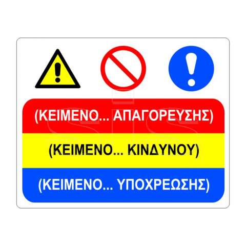 Κατόπιν παραγγελίας Η πινακίδα αποτελείται από φύλλο αλουμινίου πάχους 1mm. Φέρει στο πίσω μέρος περιμετρικά ταινία διπλής όψης για εύκολη τοποθέτηση σε τοίχο, σε πόρτα ή σε άλλη επιφάνεια και στα τέσσερα άκρα της οι γωνίες είναι στρογγυλεμένες. Η σήμανση ασφαλείας γίνεται με τυποποιημένα σήματα και χρώματα ασφαλείας.