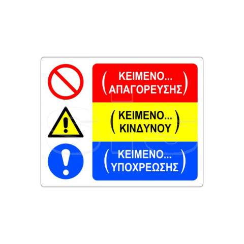 Κατόπιν παραγγελίας Η πινακίδα αποτελείται από φύλλο αλουμινίου πάχους 1mm. Φέρει στο πίσω μέρος περιμετρικά ταινία διπλής όψης για εύκολη τοποθέτηση σε τοίχο, σε πόρτα ή σε άλλη επιφάνεια και στα τέσσερα άκρα της οι γωνίες είναι στρογγυλεμένες. Η σήμανση ασφαλείας γίνεται με τυποποιημένα σήματα και χρώματα ασφαλείας.