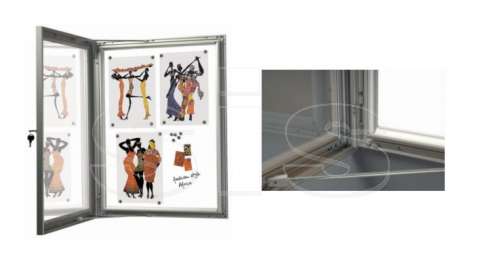 Πίνακας ανακοινώσεων από profile αλουμινίου. Η επιφάνεια επικόλλησης των εντύπων είναι μαγνητική ώστε τα έντυπα να στερεώνονται με μαγνητάκια που παρέχονται με τον πίνακα. Κλειδώνει και μπορεί να τοποθετηθεί οριζόντιος ή κάθετος. Διαστάσεις 12A4 (εσωτ.: 94,3x97,3 εξωτ.: 105x108).