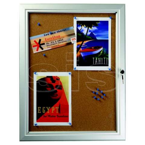 Πίνακας ανακοινώσεων από profile αλουμινίου. Η επιφάνεια επικόλλησης των εντύπων είναι από φελλό. Κλειδώνει και μπορεί να τοποθετηθεί οριζόντιος ή κάθετος. Διαστάσεις: 4Α4 (εσωτ.: 48,3x65,3 εξωτ.: 58,5x75,5).