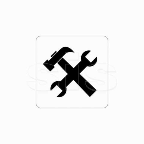 The sign is made of white aluminum sheet, which is 1mm thick. It has at its perimeter a double-sided tape (on the back side) for easy placement on a wall, door or other surface. At its four edges the corners are rounded. The graphics are in black (other basic colors are also available on demand).