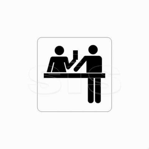 The sign is made of white aluminum sheet, which is 1mm thick. It has at its perimeter a double-sided tape (on the back side) for easy placement on a wall, door or other surface. At its four edges the corners are rounded. The graphics are in black (other basic colors are also available on demand).
