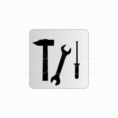 Available on order The sign is made of aluminum sheet in its natural color silver, and is 1mm thick. It has at its perimeter a double-sided tape, on the back side, for easy placement on a wall, door or other surface. At its four edges the corners are rounded. The graphics are in black (other basic colors are also available on demand).