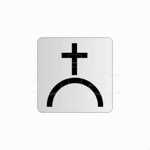 The sign is made of aluminum sheet in its natural color silver, and is 1mm thick. It has at its perimeter a double-sided tape, on the back side, for easy placement on a wall, door or other surface. At its four edges the corners are rounded. The graphics are in black (other basic colors are also available on demand).