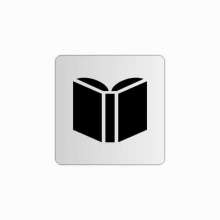 Available on order The sign is made of aluminum sheet in its natural color silver, and is 1mm thick. It has at its perimeter a double-sided tape, on the back side, for easy placement on a wall, door or other surface. At its four edges the corners are rounded. The graphics are in black (other basic colors are also available on demand).