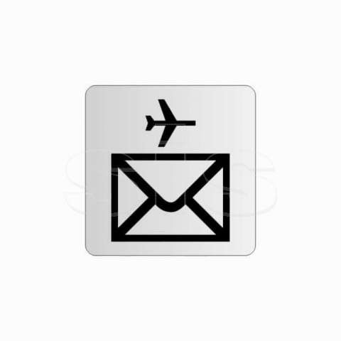 The sign is made of aluminum sheet in its natural color silver, and is 1mm thick. It has at its perimeter a double-sided tape, on the back side, for easy placement on a wall, door or other surface. At its four edges the corners are rounded. The graphics are in black (other basic colors are also available on demand).