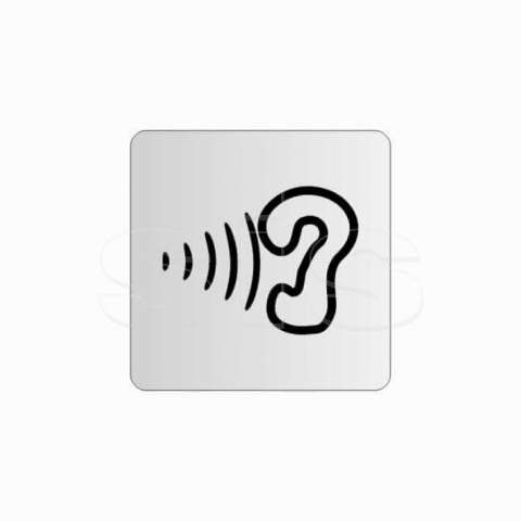 Available on order The sign is made of aluminum sheet in its natural color silver, and is 1mm thick. It has at its perimeter a double-sided tape, on the back side, for easy placement on a wall, door or other surface. At its four edges the corners are rounded. The graphics are in black (other basic colors are also available on demand).