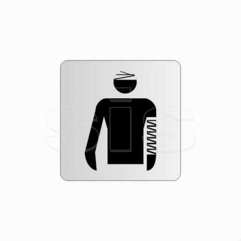 Available on order The sign is made of aluminum sheet in its natural color silver, and is 1mm thick. It has at its perimeter a double-sided tape, on the back side, for easy placement on a wall, door or other surface. At its four edges the corners are rounded. The graphics are in black (other basic colors are also available on demand).