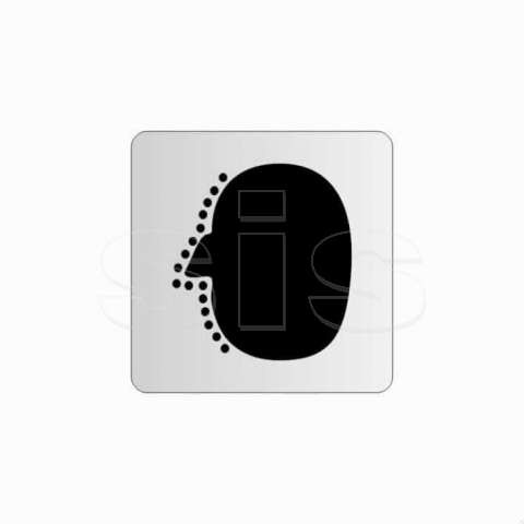 The sign is made of aluminum sheet in its natural color silver, and is 1mm thick. It has at its perimeter a double-sided tape, on the back side, for easy placement on a wall, door or other surface. At its four edges the corners are rounded. The graphics are in black (other basic colors are also available on demand).