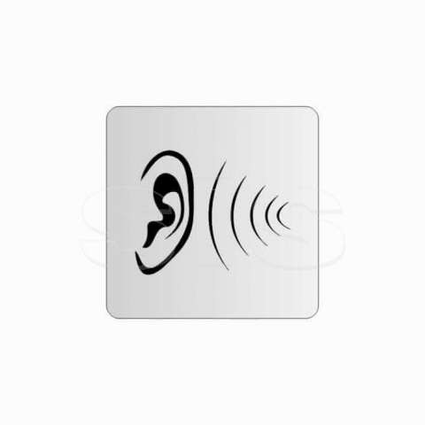 Available on order The sign is made of aluminum sheet in its natural color silver, and is 1mm thick. It has at its perimeter a double-sided tape, on the back side, for easy placement on a wall, door or other surface. At its four edges the corners are rounded. The graphics are in black (other basic colors are also available on demand