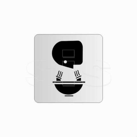 Available on order The sign is made of aluminum sheet in its natural color silver, and is 1mm thick. It has at its perimeter a double-sided tape, on the back side, for easy placement on a wall, door or other surface. At its four edges the corners are rounded. The graphics are in black (other basic colors are also available on demand
