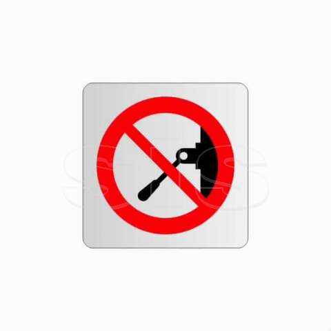 Available on order The sign is made of aluminum sheet in its natural color silver, and is 1mm thick. It has at its perimeter a double-sided tape, on the back side, for easy placement on a wall, door or other surface. At its four edges the corners are rounded.