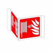 <color red - black for prohibition> <color yellow - black for warning> <color blue for obligation> <color red for fire> <color green for escape> <combinations for safety texts>